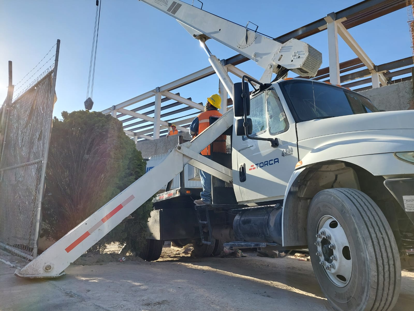 Izajes y maniobras en altura: montaje de estructuras, maquinaria y tanques; buen alcance telescópico en obra.
