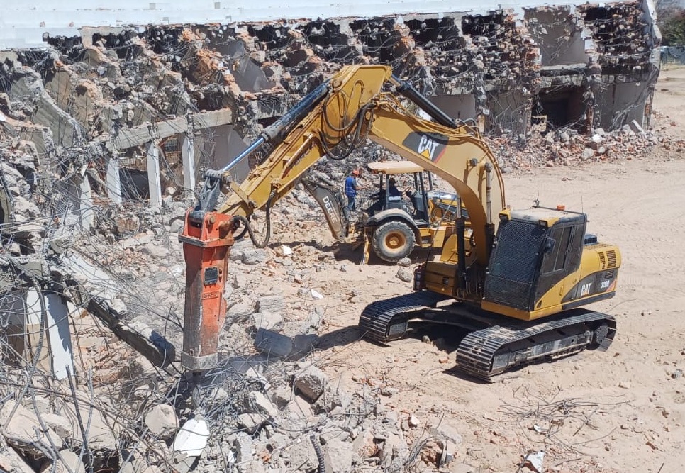 Demolición de roca y concreto, apertura de zanjas en terreno duro, retiro de zapata, estructuras y losas.