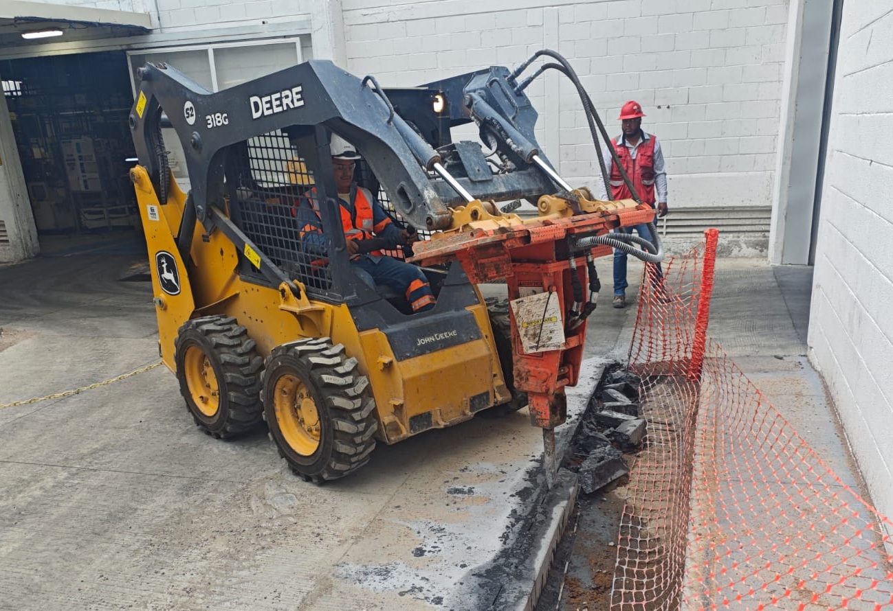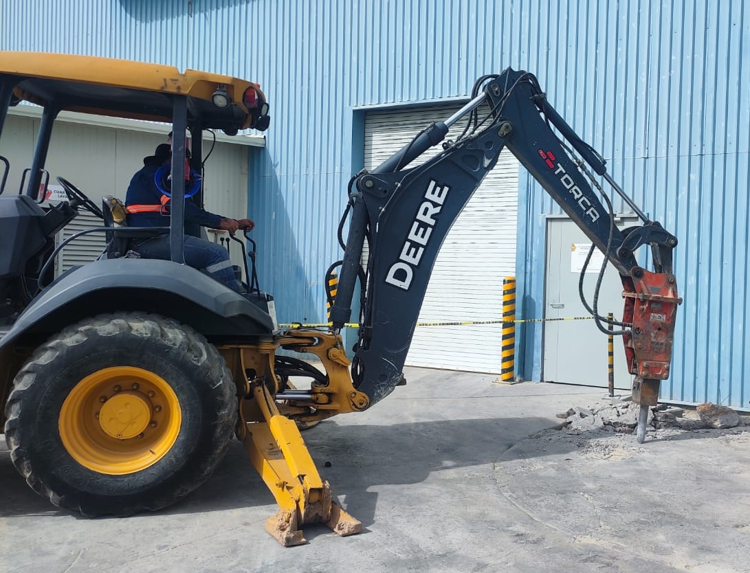 Rompimiento de losas, banquetas, y roca media en zonas urbanas; baheo y preparación para zanjas.